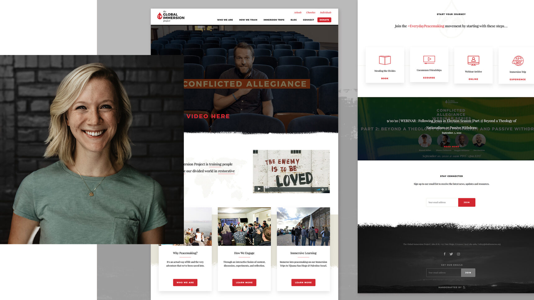 My favorite project over the past five years would definitely be the new website for The Global Immersion Project—a San Diego based nonprofit working to train people of faith to engage our divided world in restorative ways. They came to us in mid-2017 in need of a little bit of help with their logo and a lot of help with a new website that launched in January 2018. They are a non-profit organization whose mission is to train people of faith in how to be peacemakers in our world. They stay in my mind because as a project manager, the collaboration and communication on this project was one of the best I’ve had a pleasure of being a part of and it was extra special to have that experience with a team whose mission I was 1,000% behind.