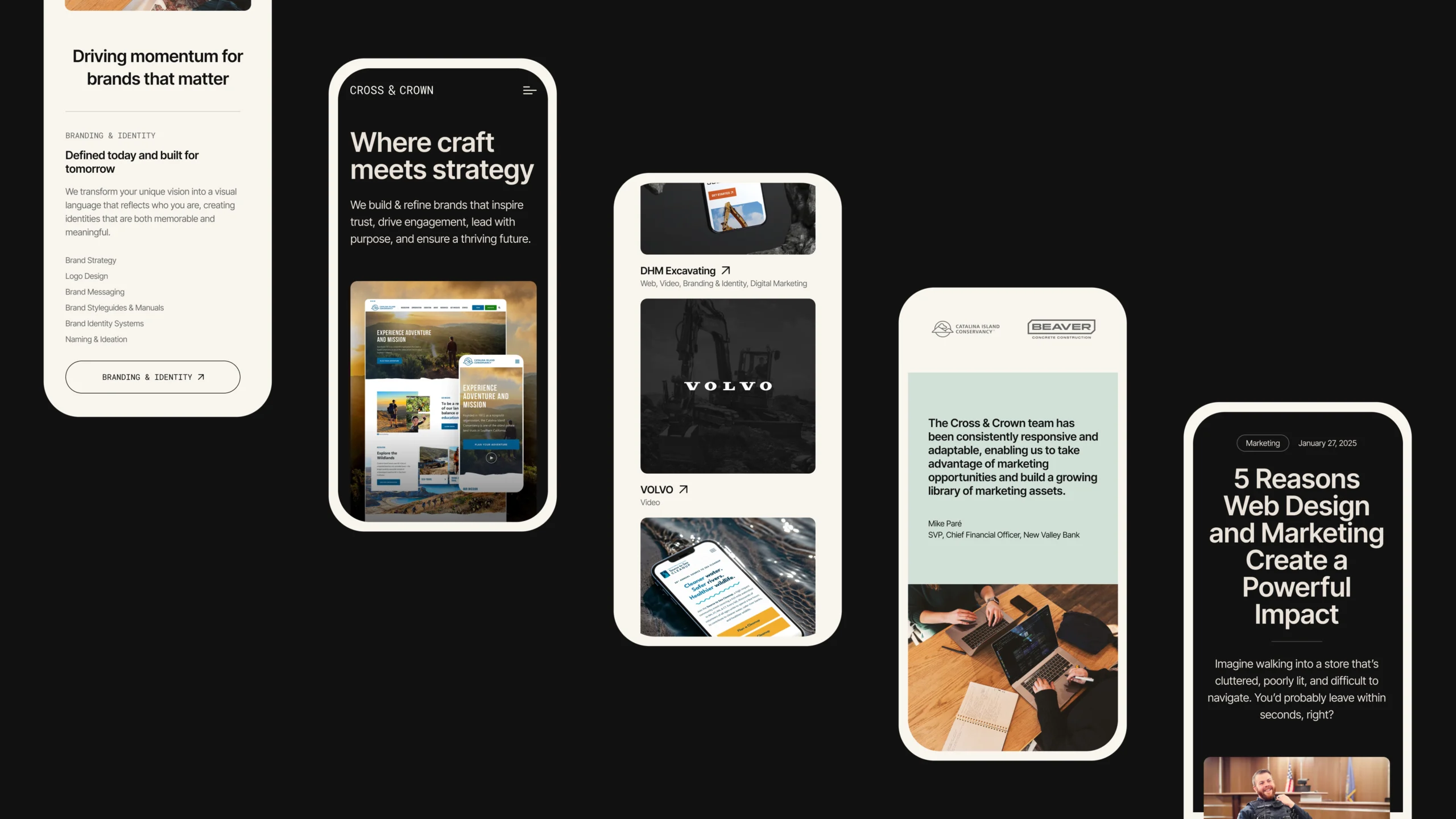 For example, Cross & Crown’s work with David H. Martin Excavating showcases the marketing holistic concept in action: they unified the company’s branding, website, and video content under one cohesive design system, resulting in a 26% increase in page views, a 25% increase in web sessions, and a 58% rise in social user acquisition. All while maintaining a consistent brand presence across every touchpoint.