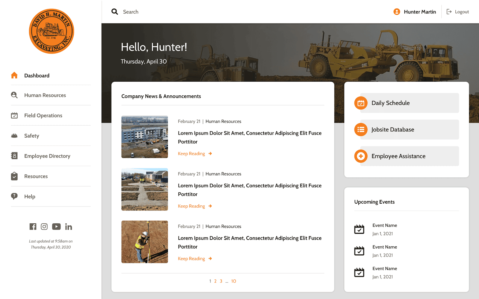 David H. Martin Excavating, Inc. is a client we’ve worked with on several projects throughout the years including their website, brand video production, and this example of a company intranet.