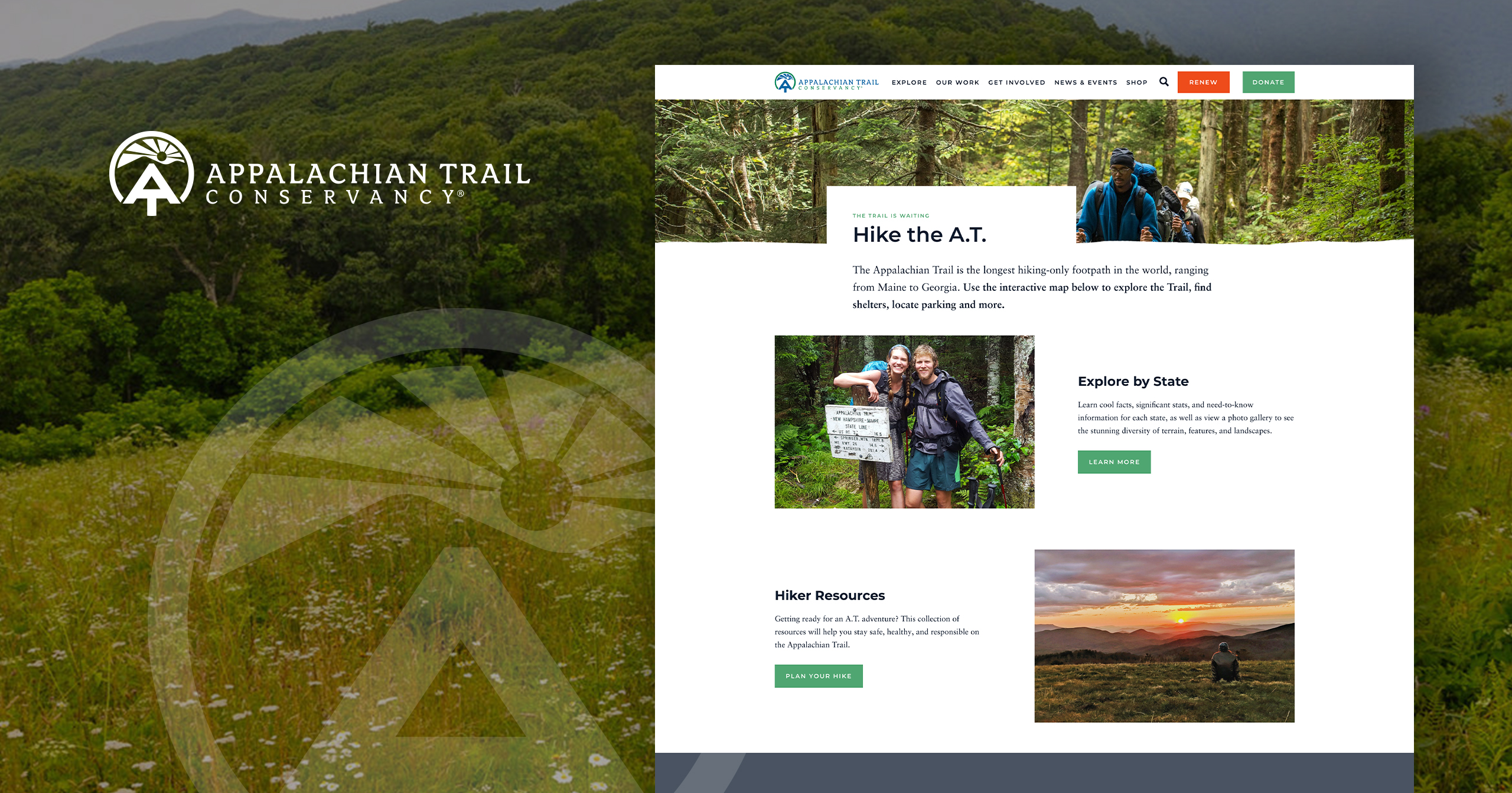 The Appalachian Trail Conservancy (ATC) is a great case study for this. As a Cross & Crown client, we improved their website to better illustrate the impact they’re making in environmental stewardship, including: