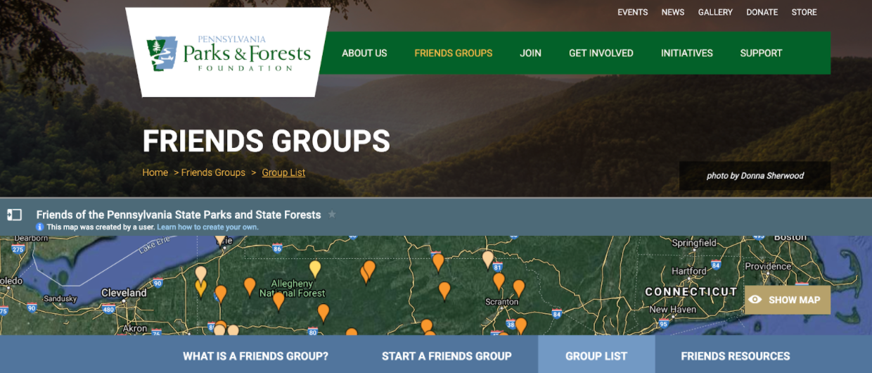We had the opportunity to partner with the Pennsylvania Parks & Forests Foundation on their website redesign and built a useful, interactive feature to help fans of specific parks and recreational areas to connect with other “friends” of the area to volunteer their time, services, and support to these spaces. Website visitors can easily navigate to their favorite outdoor area using the interactive map or the side navigation. It is easy to sort destinations by region to find a friend group closest to you.