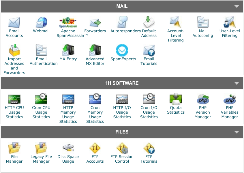 Simply stated, cPanel (short for control panel) makes it easy for you to administer the hosting details of your website – things like adding email users, accessing your site’s database, and setting up SSL certificates (keep reading to find out what this is!). Cpanel displays the backend content in a visual workflow making the high level administration of website more accessible to owners.