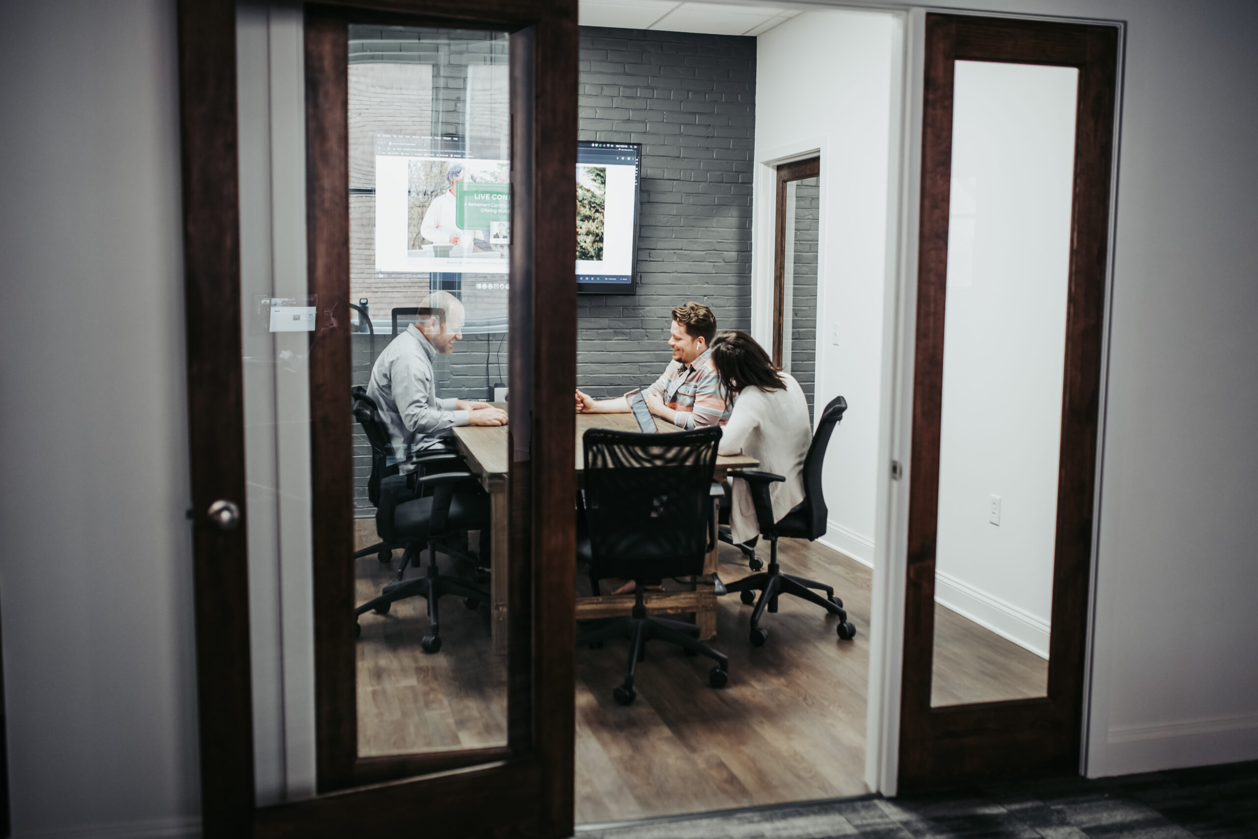 Our new office features a central meeting room for our team to collaborate or meet with clients in office or over a Zoom video conference call.