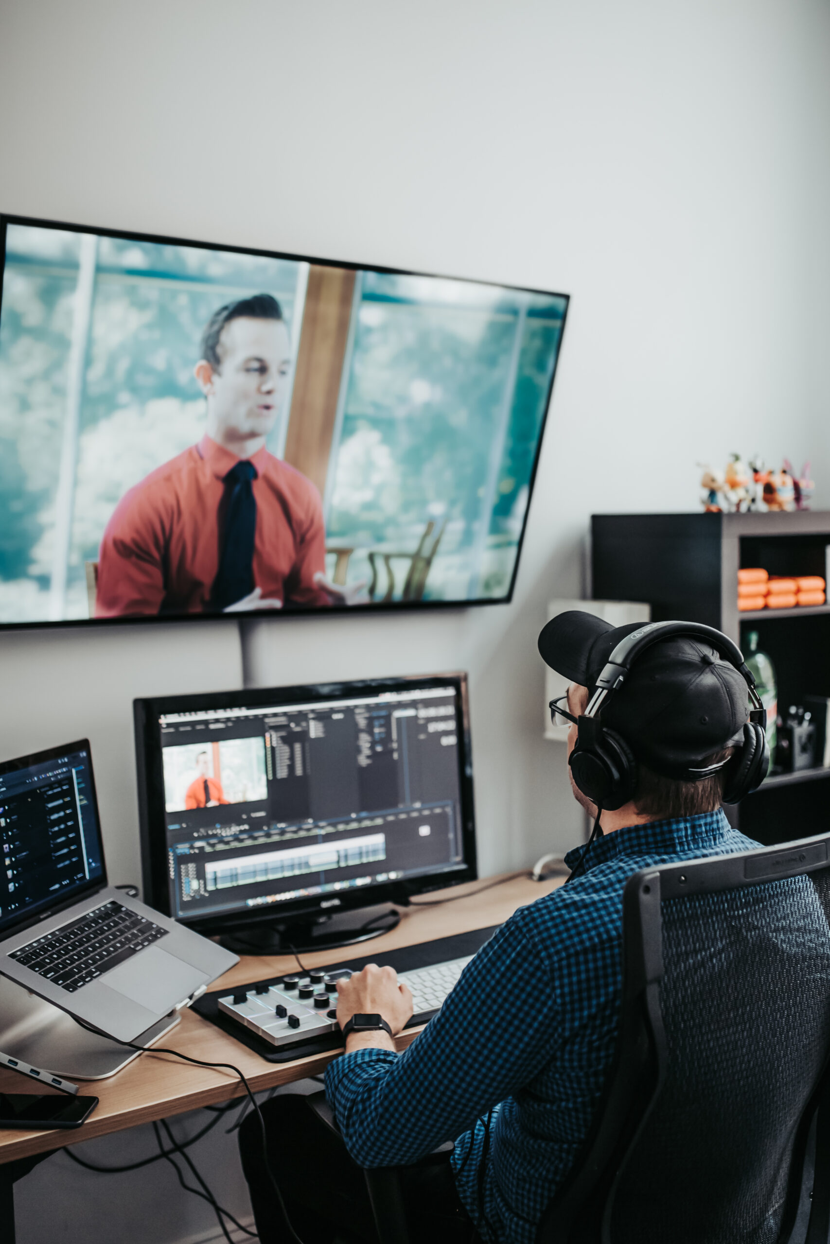 Our video team also had their space built to enhance their work environment with room for equipment, large screen preview monitors, and editing tools.