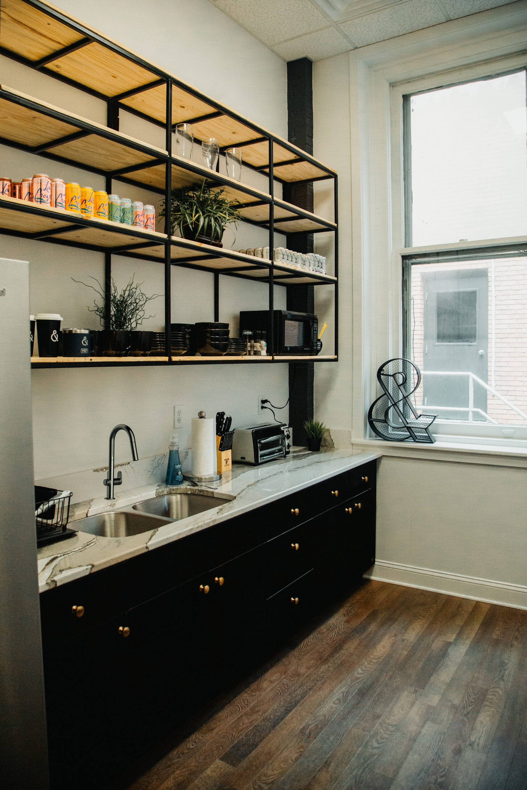 Our new office features a minimal yet functional kitchen to take a break, re-hydrate, and refuel with a fresh cup of coffee or espresso.