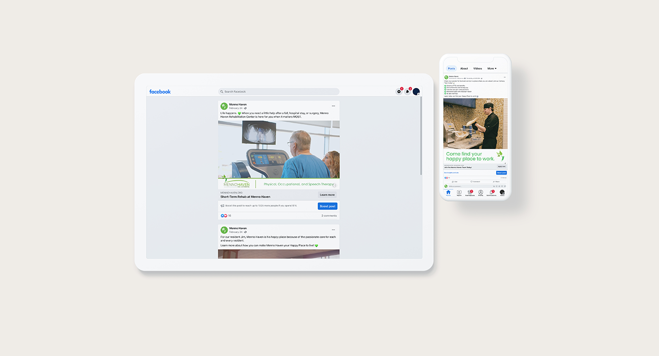 Our team crafted an integrated marketing campaign for Menno Haven, a premier retirement and senior living community in south-central Pennsylvania. Our collaboration aimed to enhance Menno Haven’s online presence for better user engagement and lead generation. We used targeted paid advertising on Facebook and Google Ads to amplify brand visibility, emphasizing Menno Haven’s faith-based values and exceptional care services.